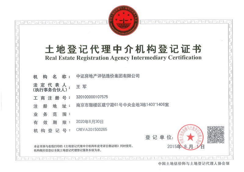 土地登記代理人資質(zhì)證書 2018-05-29 17:27:48