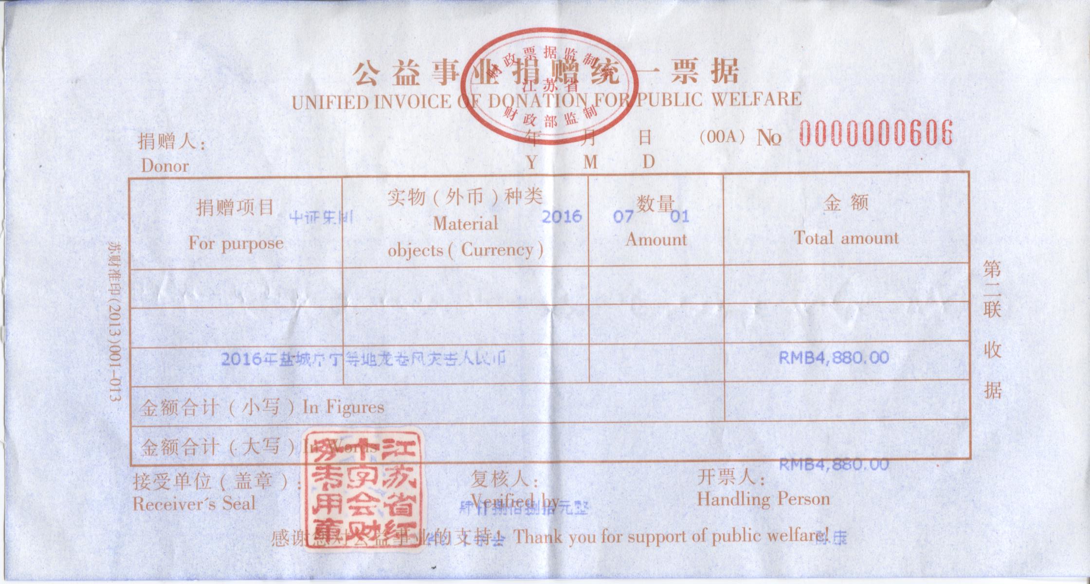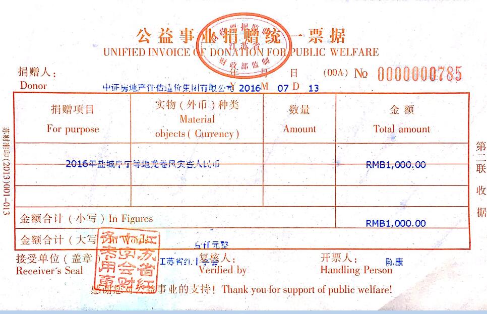 中證集團(tuán)全體員工向鹽城市阜寧縣災(zāi)區(qū)人民捐款5800